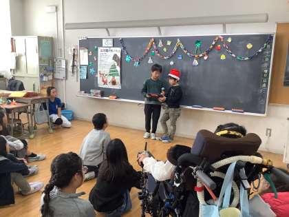 お楽しみ会やクリスマス会は、司会進行を子供たちが行うことが多いです。先生に頼らず、自分たちで楽しい会にするために、頑張っています。