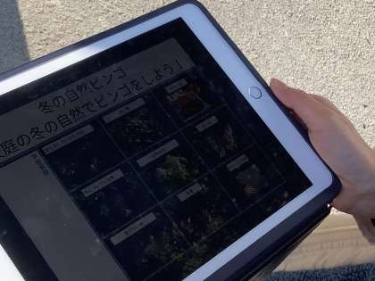 1/15 冬の自然ビンゴ 4年生 公開日 2025/01/15 更新日 2025/01/15 できごと 4年生は、冬の生き物の学習で、「冬の自然ビンゴ」に挑戦しました。校内にある冬の自然をたくさん見つけて、タブレットで記録します。 いいね(0)