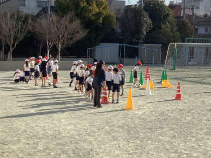 1/15 ボールけりあそび2年生 公開日 2025/01/15 更新日 2025/01/16 できごと 寒い時期ですが、どの学級も体育で元気に体を動かしています。2年生はボール蹴り遊びに挑戦しています。ボールを的に当てたり、ボールを蹴りながらコーンを避けたり、友達と一緒に楽しく学びます。 いいね(0)