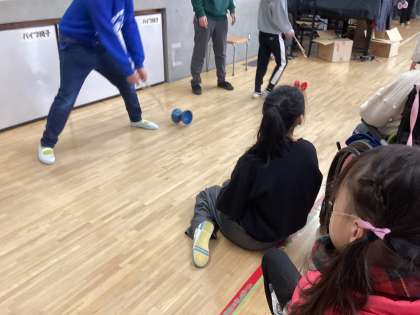 1/29 クラブ発表 きはだ学級 公開日 2025/01/30 更新日 2025/01/30 できごと 中休みにジャグリングクラブの発表を見ました。 こま回しや皿まわしがとても上手でした。 いいね(0)