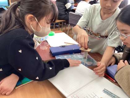 じしゃくと鉄の距離を変えて、鉄を引きつける力を調べました。