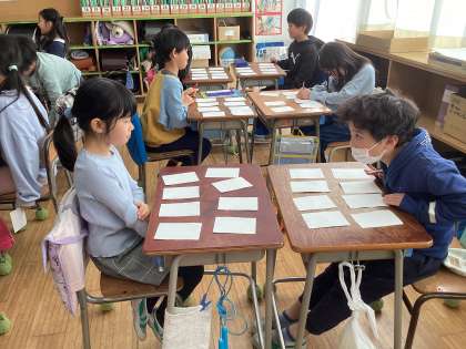 外国語活動では、カードゲームをしながら色と形の英語表現に親しみました。