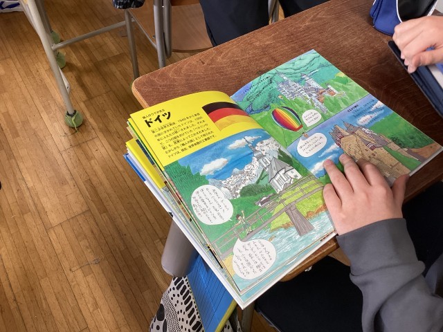 日本の文化と世界の文化の違いを本やインターネットを使って調べています。食事の違いや衣類の違いに興味を抱き、一人一人が責任をもってまとめています。班での発表が楽しみです。