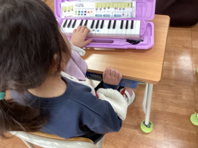 音楽の授業で、鍵盤ハーモニカの練習をしました。