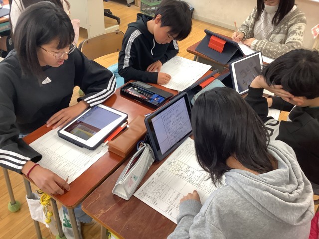 6年生の社会では「日本とつながりの深い国」としてアメリカ合衆国、中華人民共和国、大韓民国、サウジアラビア、ブラジルについて調べています。グループで役割を決めて調べ、分かったことを友達に伝え合いました。