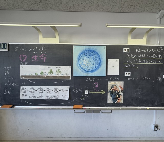 理科の学習では、人はどのように成長して生まれるのかについて調べています。