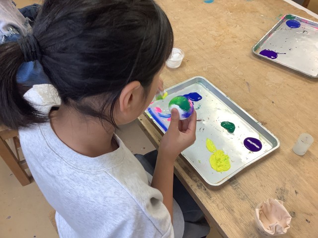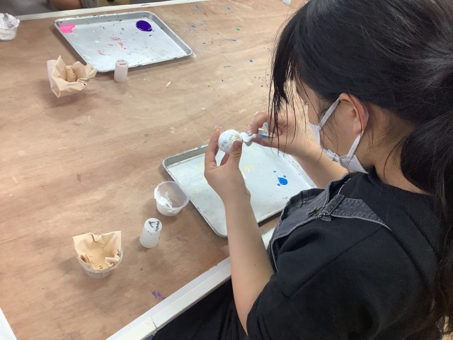 3/5 ひかるどろ団子 5年生 公開日 2025/03/05 更新日 2025/03/05 できごと 5年生の図工では「光るどろ団子」作りをしています。ツルツルに丸めたどろ団子に、今日は漆喰を塗り、その上に色をつけました。完成が楽しみです。 いいね(0)