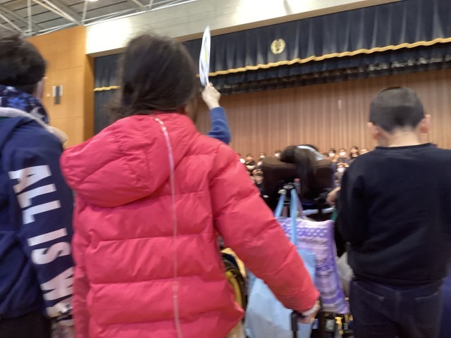 6年生を送る会がありました。6年生へのメッセージ入りの歌を、気持ちを込めて歌いました。