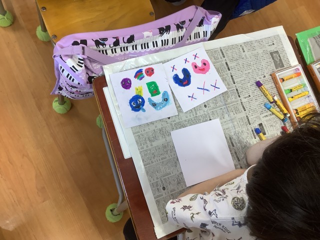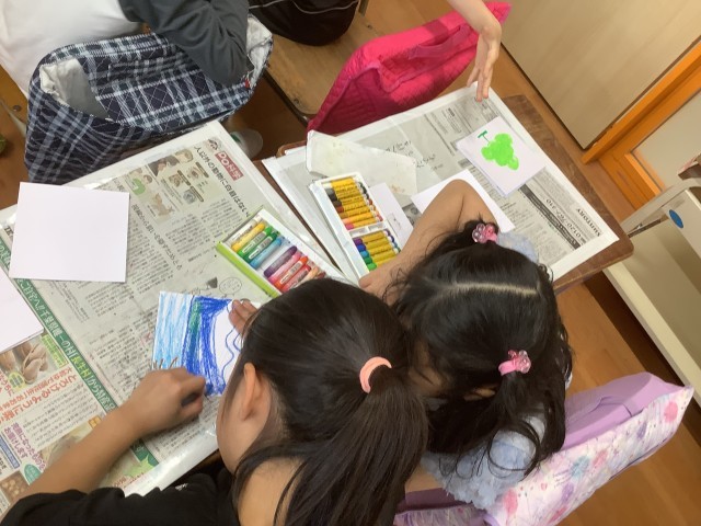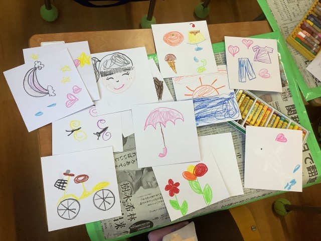 友達とすきなものについて話したり、クレヨンの色を重ねたり、絵を描くことを楽しみました。