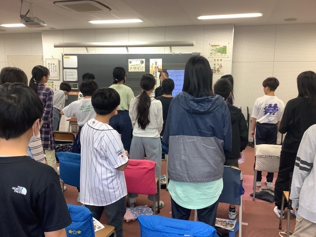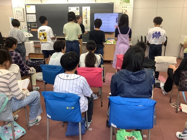 6年生は、「おぼろ月夜」の練習をしました。列ごとにメロディーを確認して、最後に全員で声を揃えて歌いました。練習を繰り返すうちに、高い声の部分が上手になりました。