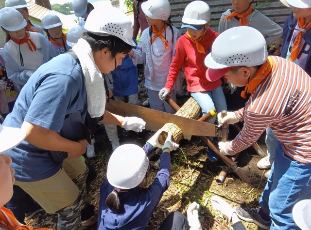 大きなノコギリで切る経験もしました。