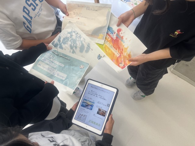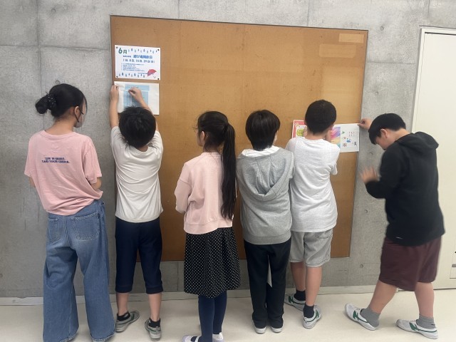 完成したポスターは、昇降口近くの掲示板に貼りました。