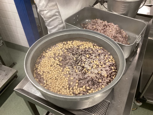 今日は、豆入りの「五穀ごはん」と