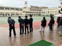 算数の学習で、学校の周り1キロメートルを歩きました。事前に何周するか予想しました。