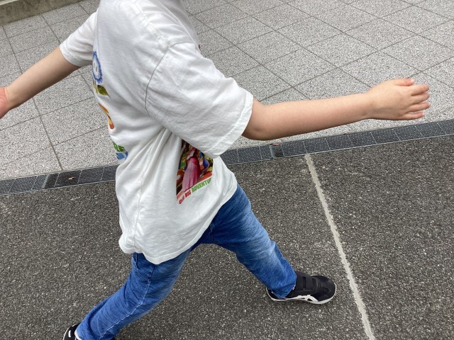 算数の学習で、学校の周り1キロメートルを歩きました。事前に何周するか予想しました。