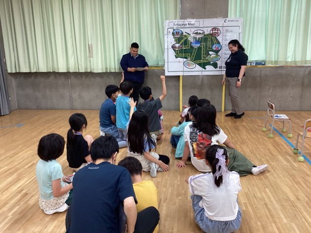 道案内、買い物、旅行計画の3ブースに分かれ、体験的に英語を学ぶことができました。