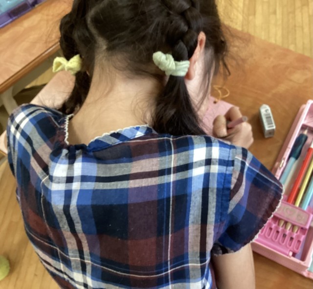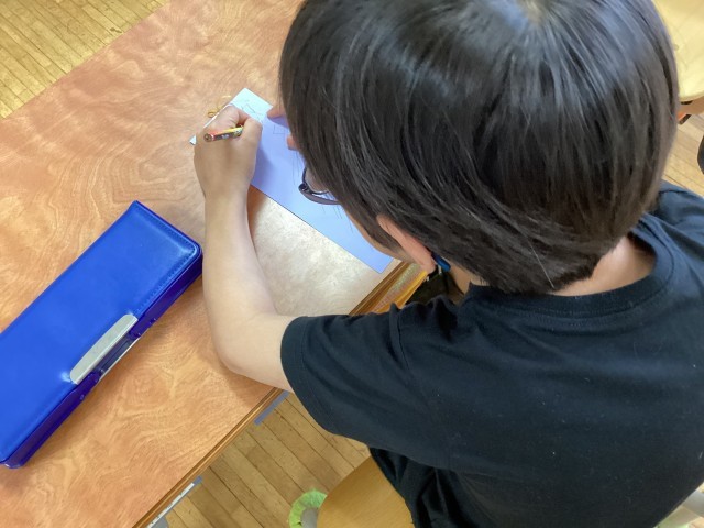 来月は七夕です。少し早いですが、七夕飾りを作り、短冊に願い事を書いて笹に飾りました。