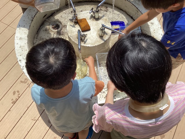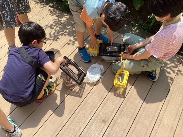 今日は、だれもいなくなった虫かごの中をかたづけ、水で洗いました。