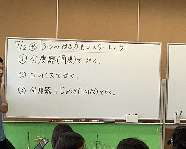 7/3 3つのかき方をマスターしよう! 5年生 公開日 2025/07/04 更新日 2025/07/04 できごと 5年生は算数で、分度器やコンパスを使った三角形のかき方を学習しました。辺の長さや角度を正確に測って、実際に三角形をかいてみます。 いいね(0)