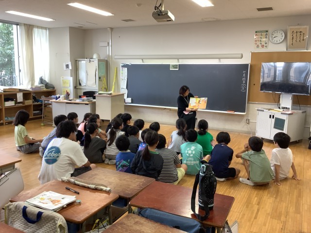 今日は1学期最後の読み聞かせです。3年生とくすのき学級、きはだ学級で、絵本を読んでいただきました。