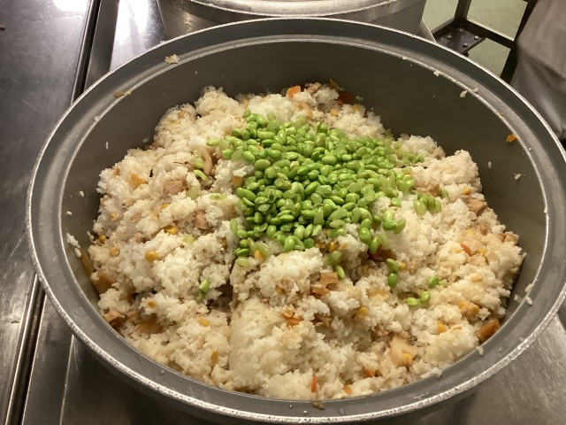 ちらしずしには、2年生が一生懸命さやむきをしてくれた枝豆を入れました。