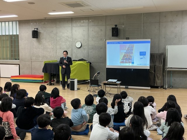ユニセフの方をお招きし、世界中の子どもたちの現状や、ユニセフの活動についてお話いただきました。