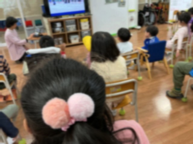 運動会の記録を見ながら、どんなところが良かったか、振り返りをしました。