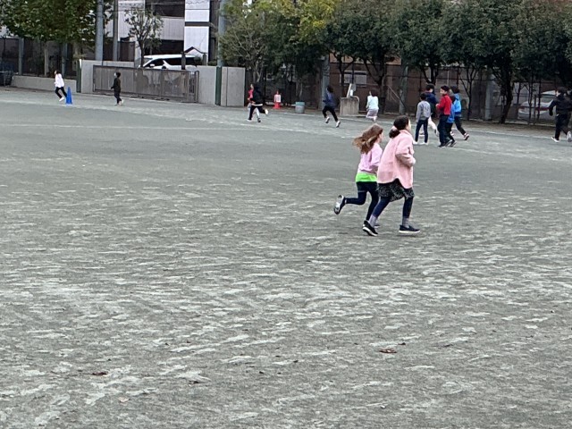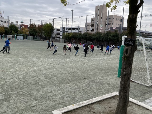 運動会が終わり、通常の体育の授業に戻りました。今日は「お楽しみ体育」として、ダンスをした後、リクエストがあったドロケイやバナナオニをしました。