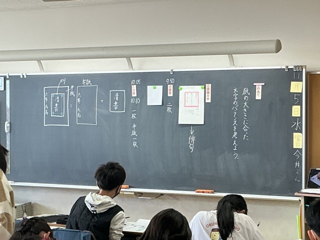 6年生は、書写の時間に自分が気に入った俳句を選び、文字のバランスを考えて丁寧に書きました。