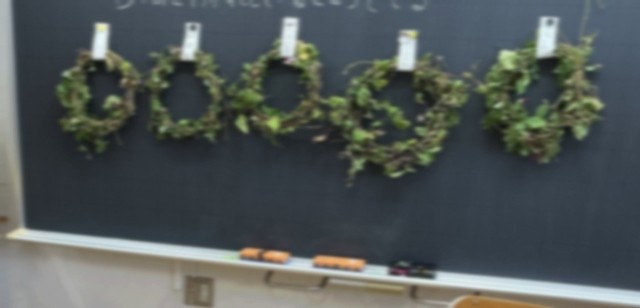 1年生が、種を取り終えた後のアサガオを使ってリースを作りました。しばらく教室に飾ってから持ち帰ります。
