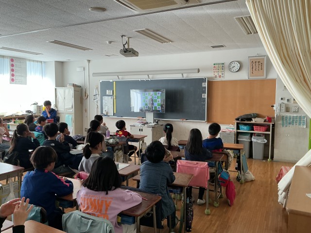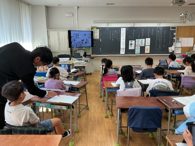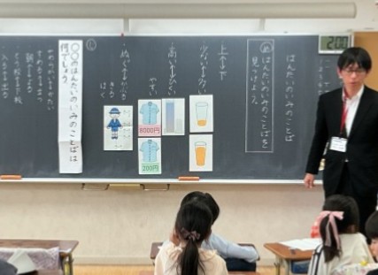 2年生は、国語で「はんたいのいみのことば」を考える教育実習生の授業がありました。