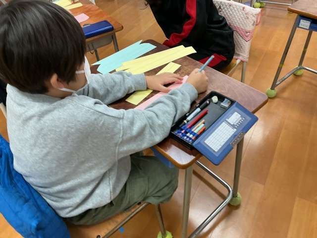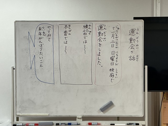 くすのき学級は、運動会の作文に取り組み始めました。お魚作文で、全体の構成を整えます。