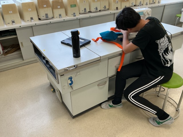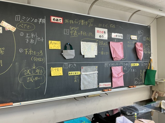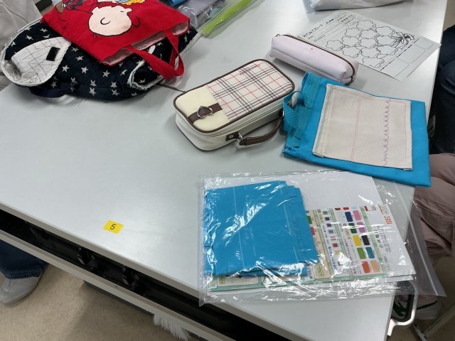 ミシンを使って、頑張って作ったバッグが出来上がってきました。世界に一つだけの手作りバッグです。