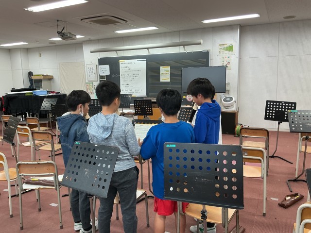 音楽会に向けて、高学年は、休み時間や給食前の時間を利用して音楽室で自主練習に取り組んでいます。