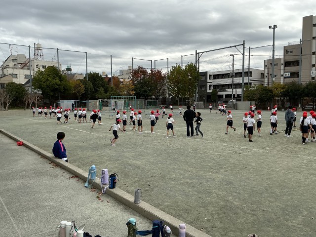 運動会が終わり、通常の体育の授業に戻りました。今日は「お楽しみ体育」として、ダンスをした後、リクエストがあったドロケイやバナナオニをしました。