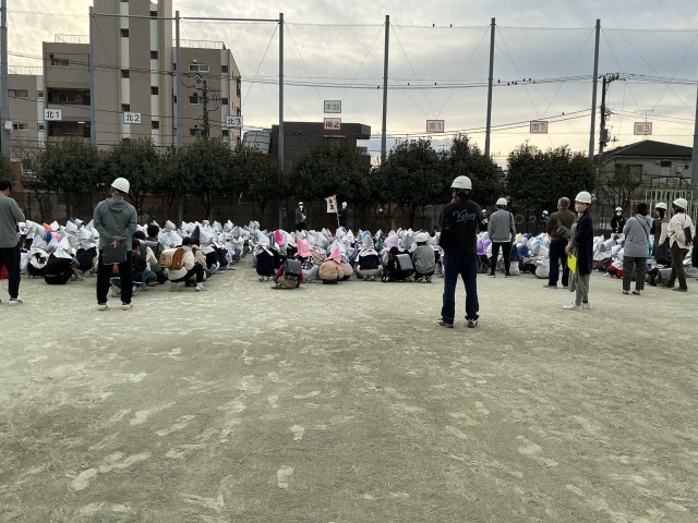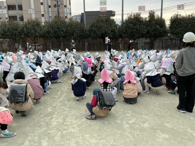 今日の避難訓練は、登校時間にかかる訓練でした。登校のタイミングであっても落ち着いて校庭に避難することができました。