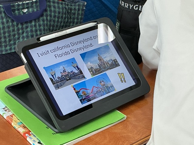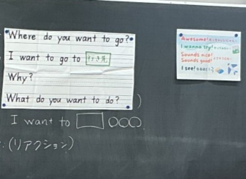 6年生は、どこの国に行きたいか、プレゼンを作りました。英語で尋ねられた時にどんな会話をするのか学習しました。