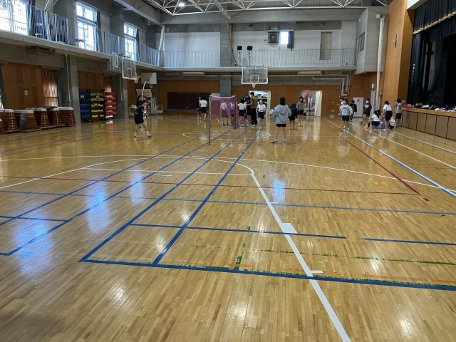 5年生は今年度2回目の指導教諭の模範授業がありました。フットビーで元気にゲームを楽しみます。