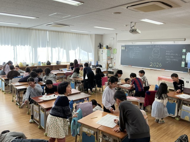 最後には、正月に関する問題や担任の先生たちの問題に答える⚪︎×クイズを行い、どの子も楽しそうな様子でした。