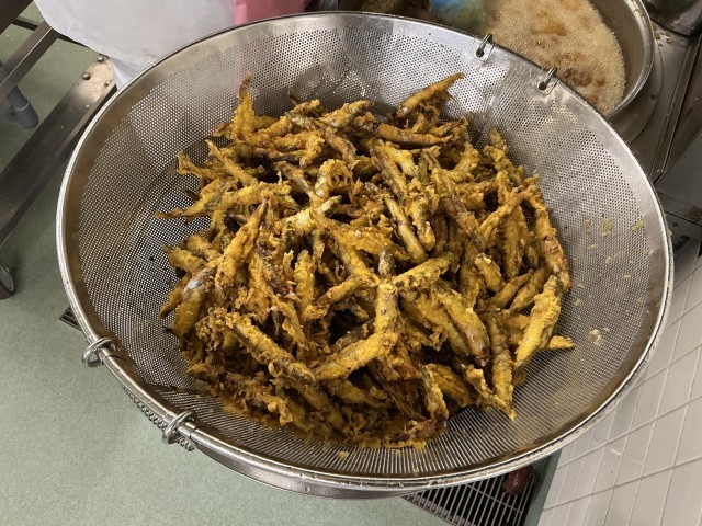 調理員さんが朝からたくさんのししゃもを揚げてくれました。