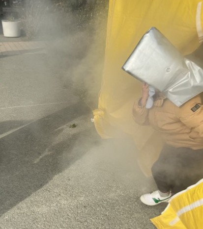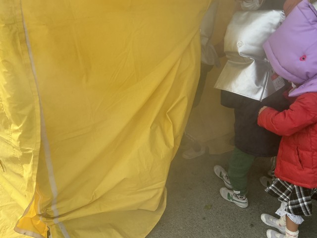 今日は1年生・3年生・くすのき学級の煙中訓練がありました。煙を怖がらずに姿勢を低くして、煙の中を歩きました。