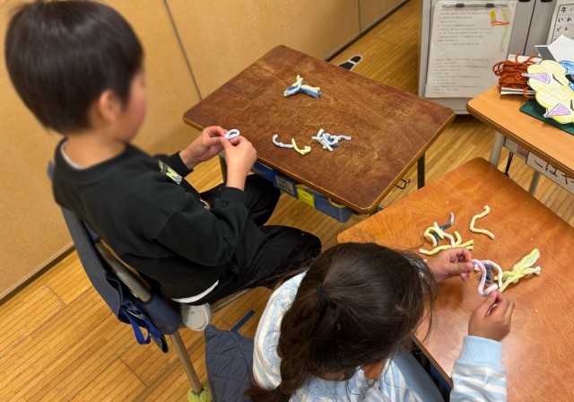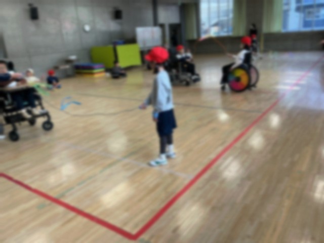 今日は縄跳びダンスの発表をして見合いました。音楽に合わせて縄の動かし方を変えたり自分達の場所を移動したりと、ペアの友達と工夫して踊りました。