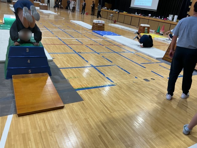 5年生は「パルクール」に挑戦しています。忍者のような動きで、流れるように様々な技に挑戦しました。今日は、指導教諭の授業として、ほかの学校の先生方も参観しました。