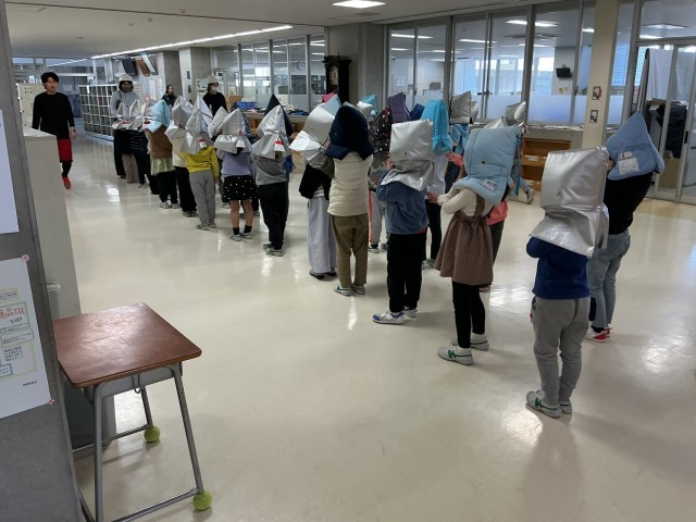 今日は、今年度最後の避難訓練がありました。校庭の状態が悪かったため、廊下避難になりました。今日の訓練は、予告なし、地震から放送室が火事になり、放送ができず先生たちが声で避難を知らせる訓練でした。どの学年も、おかしもち のルールを守って落ち着いて行動できました。