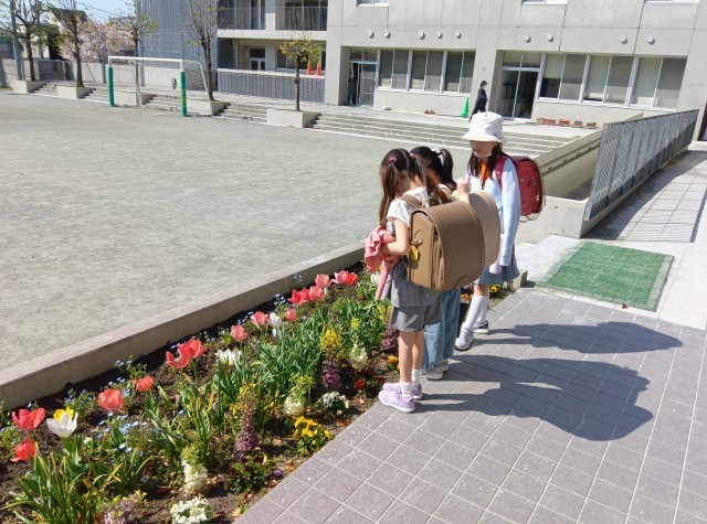 3月18日に学級前のプランターと、学童横の畑に種芋を植えました。丁寧に土をかけ、成長を楽しみにしていました。