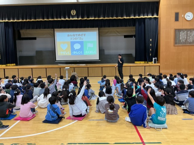4年生は2時間目に学年集会を行いました。学年みんなで頑張ることや宿題についての話をしました。最後は、みんなでレクを行いました。今年1年間、チーム4年生で頑張ります!