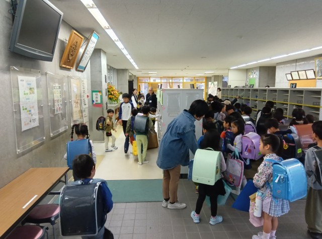 新しい1年生が入学しました。校長先生のお話を聞いて、学級ごとに記念写真を撮影しました。少し緊張した様子の子供たち。元気に学校に通ってほしいと思います。天気も良く晴れやかな入学式となりました。