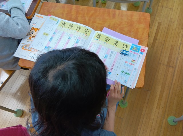 3年生では、早速、国語の学習が始まりました。ドリルを使って漢字を学習しています。丁寧に書いていて感心しました。