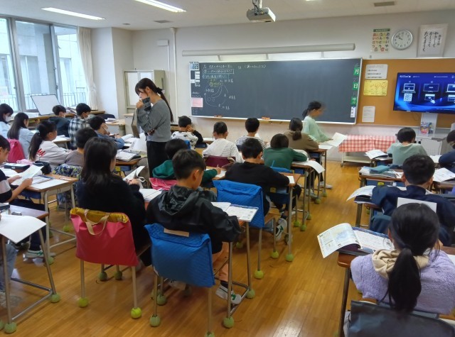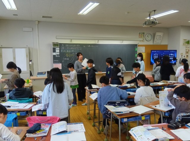 5年生は社会で、日本の国土の広さについて調べました。地球儀を見ると日本は小さく見えますが、いろいろな島があって、領海など、海を含めると意外に広いことが分かりました。
