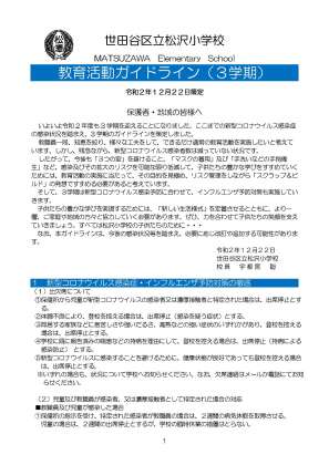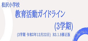 明日から、3学期が始まります。感染を予防しながら、少しでも子供たちの活動が豊かになるように努めてまいります。学期の初めに当たり、再度ガイドラインをお読みいただき、内容をご確認いただくとともに、引き続きのご協力よろしくお願いいたします。